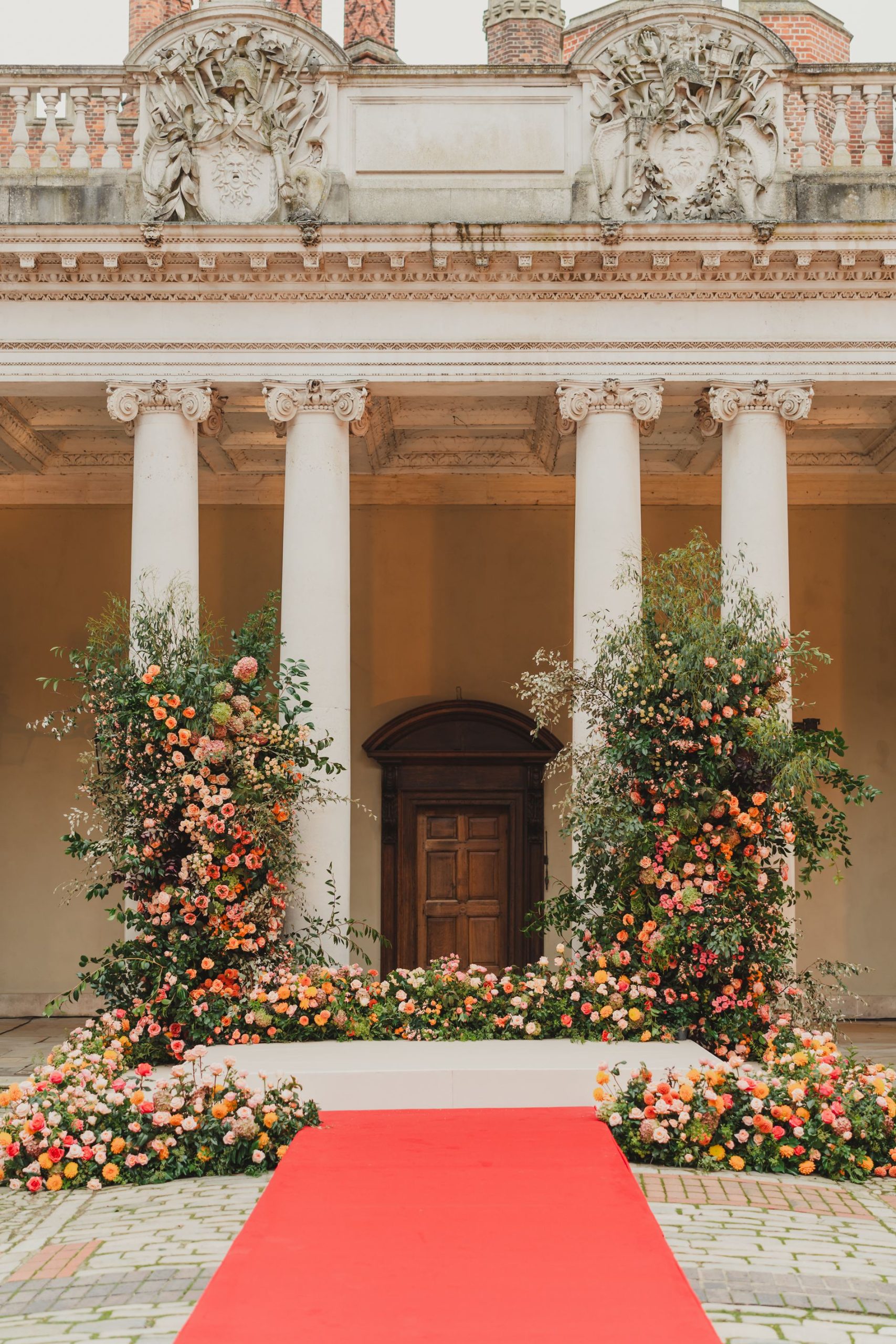 For the overall aesthetic, with the help of our colleagues at DNC (Devika Narain Co), we leaned into the idea of an English garden in bloom, translated through a palette of soft pinks, apricots, and fresh greens.